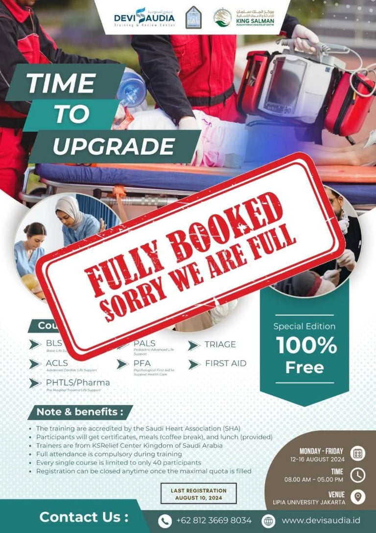 Devisaudia, bekerja sama dengan King Salman Humanitarian Aid & Relief Center (KSHA Relief Center) dari Arab Saudi, dengan bangga mengumumkan pelatihan kesehatan internasional untuk tenaga kesehatan di Indonesia. Pelatihan ini dirancang untuk akademisi dan praktisi kesehatan termasuk dokter, perawat, bidan, apoteker, serta profesional kesehatan masyarakat dan lingkungan, juga boleh diikuti oleh dosen dan mahasiswa.